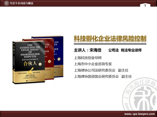 我所宋海佳律师作为上海市优秀科技创业导师,受邀在会上作题为“科技孵化企业法律风险控制”的主题演讲。